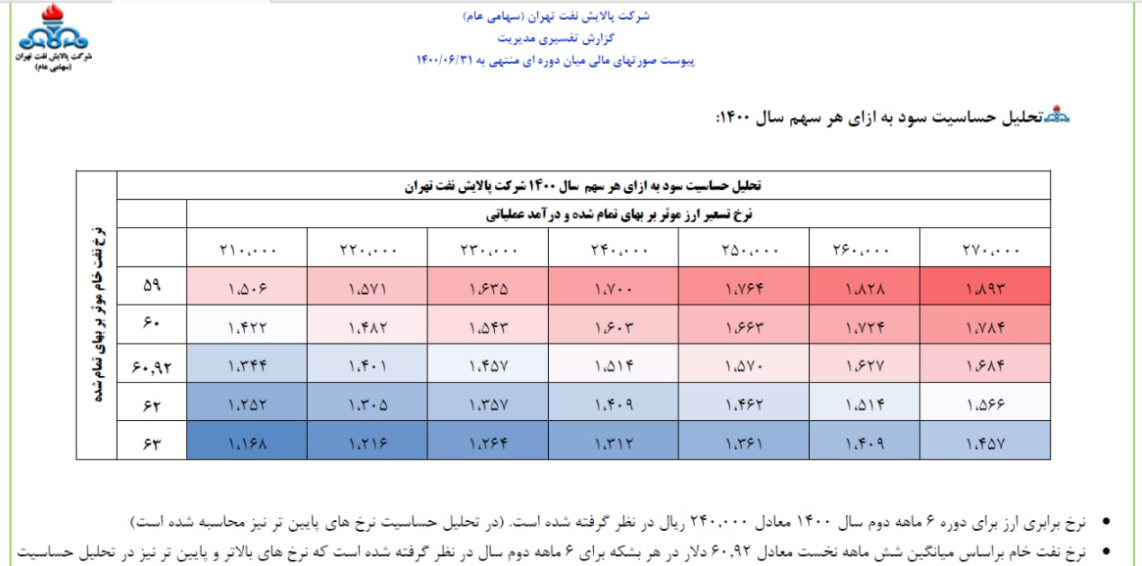 | تاثیر دلار بر نرخ فروش شرکت | رشد نرخ دلار منجر به شناسایی سود از محل صادرات محصولات و همچنین تسعیر ارز میشود |