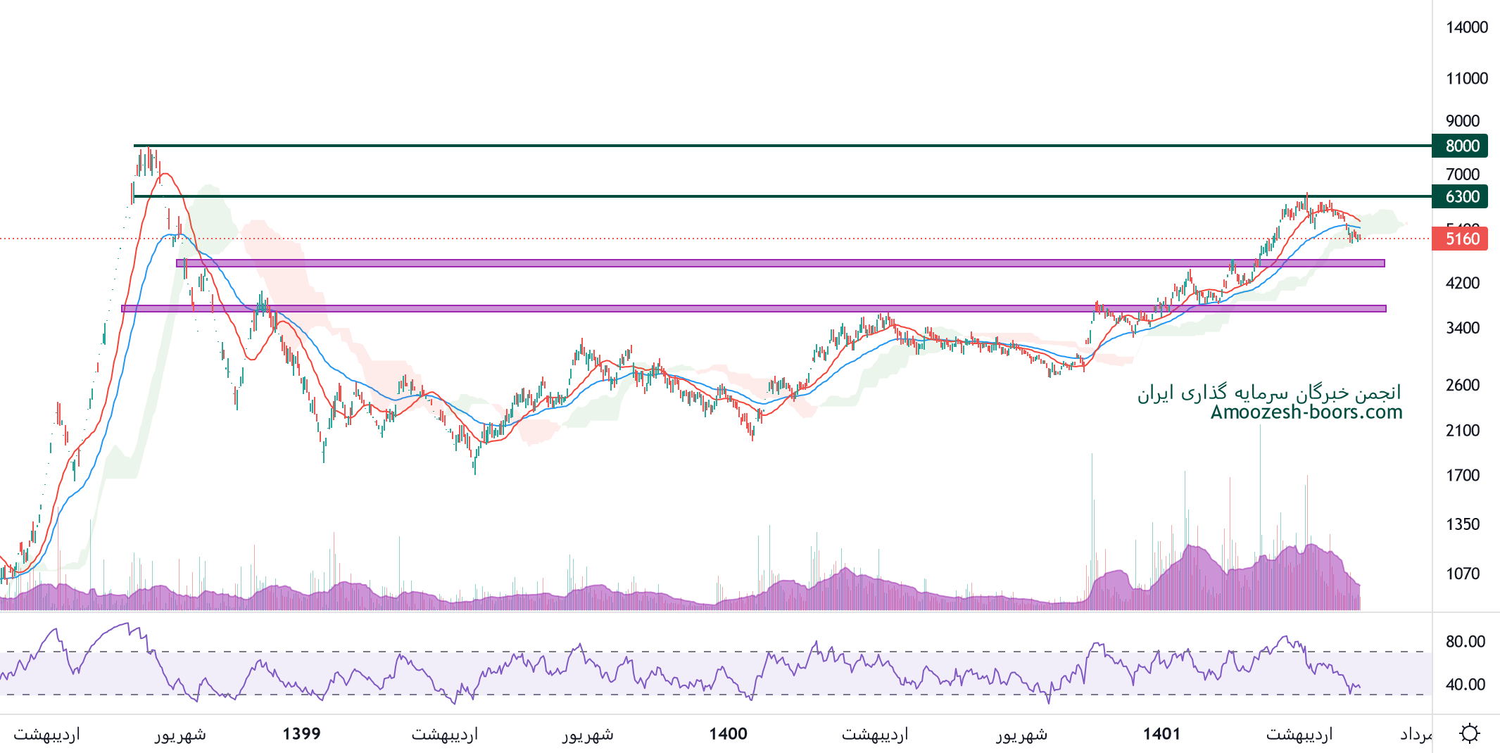 بر اساس نمودار تکنیکال نماد شتران، قیمت سهم در حال اصلاح میباشد، اولین حمایت شتران محدوده 4500 و بعد از آن 3700 ریال خواهند بود، همچنین در صورت تثبیت قیمت و بروز نشانه های برگشت، مقاومت های سهم به ترتیب 6300 و 8000 ریال در نظر گرفته خواهند شد.