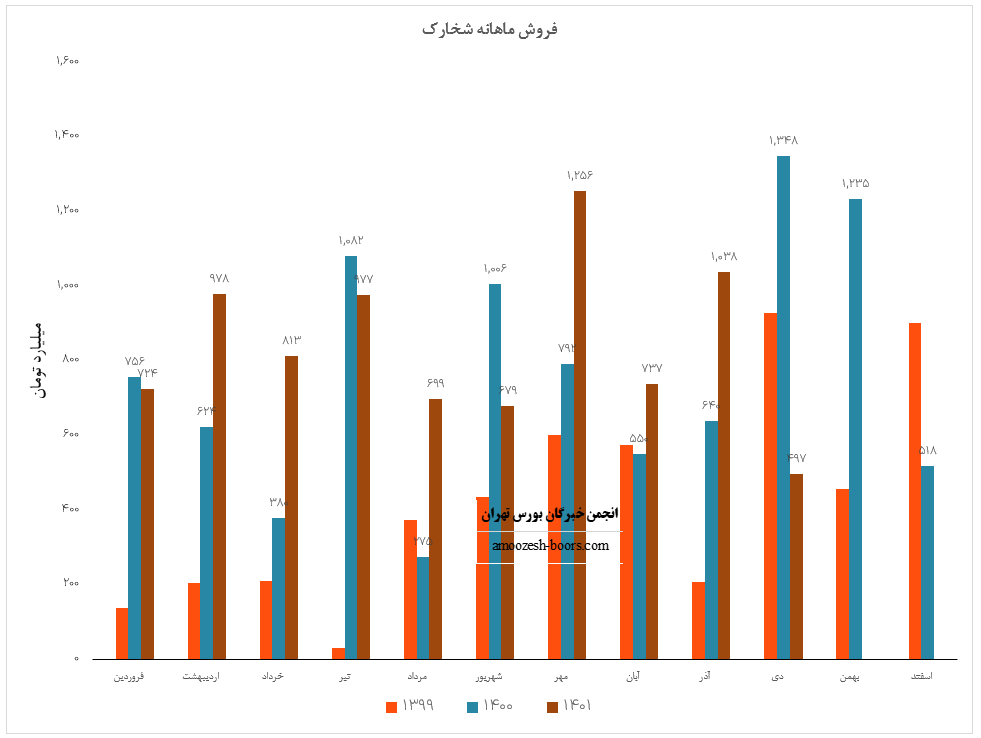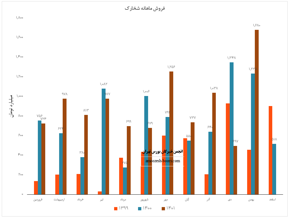 نماد شخارک (پتروشیمی خارک) در بهمن ماه 1401 حدود مبلغ 1680 میلیارد تومان درآمد داشته که این میزان در مقایسه با ماه گذشته 238% و همچنین در مقایسه با مدت مشابه سال گذشته 36% رشد پیدا کرده است.