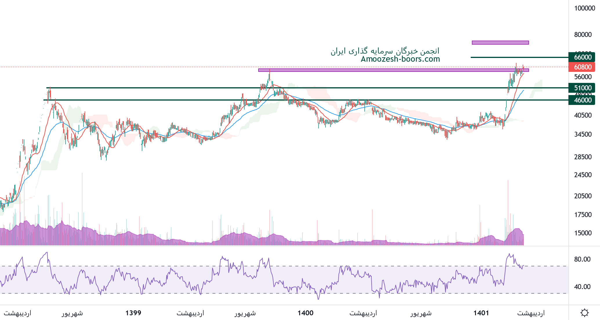 نماد شخارک درگیر محدوده مهم مقاومتی 60000 ریال میباشد، در صورت عبور قیمت از این سطح، مقاومت بعدی سهم شخارک 66000 و 75000 ریال در نظر گرفته خواهند شد، همچنین در صورت ورود سهم به فاز اصلاحی، اولین حمایت سهم 51000 ریال خواهد بود.