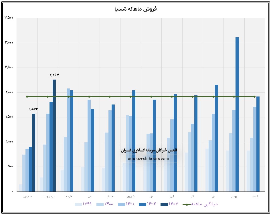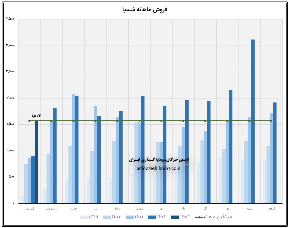 سهم شسپا در فروردین ماه حدود بیش از 44 هزار متر مکعب از محصولات خود را به فروش رسانده که این میزان در مقایسه با حجم فروش ماه گذشته خود حدود 20 درصد کاهش پیدا کرده است.