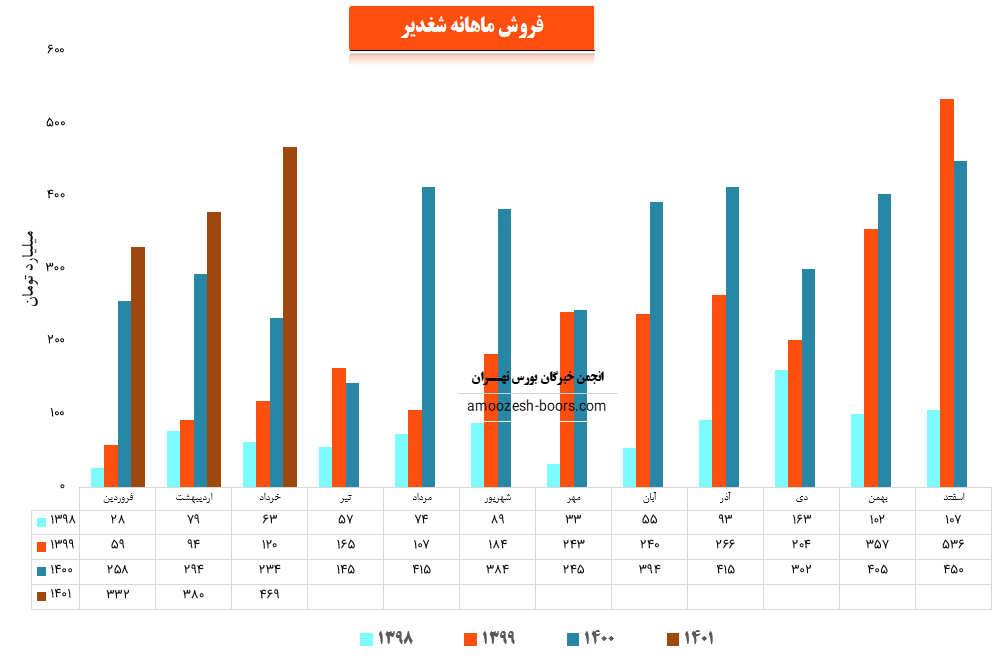 فروش سهم شغدیر: 3909 میلیارد تومان که نسبت به دوره مشابه گذشته 52% افزایش یافته است.