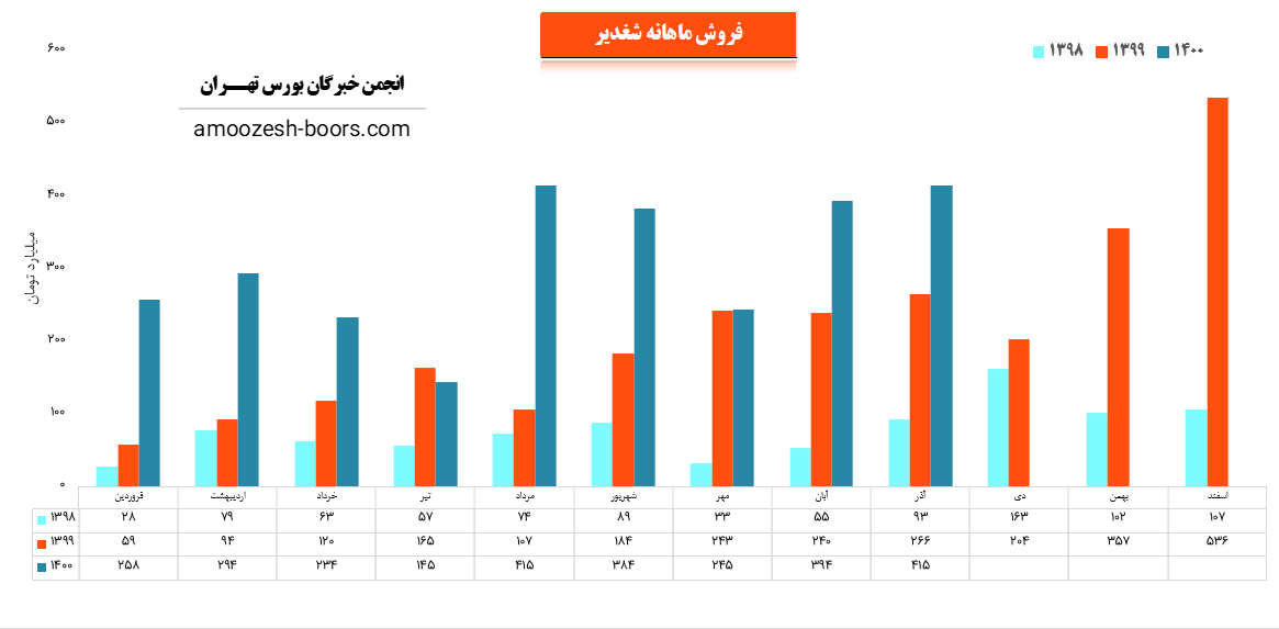 نماد شغدیر در آذر 1400 مبلغ 415 میلیارد تومان درامد داشته که این میزان نسبت به ماه گذشته 5% و همچنین نسبت به مدت مشابه سال گذشته 56% رشد پیدا کرده است!