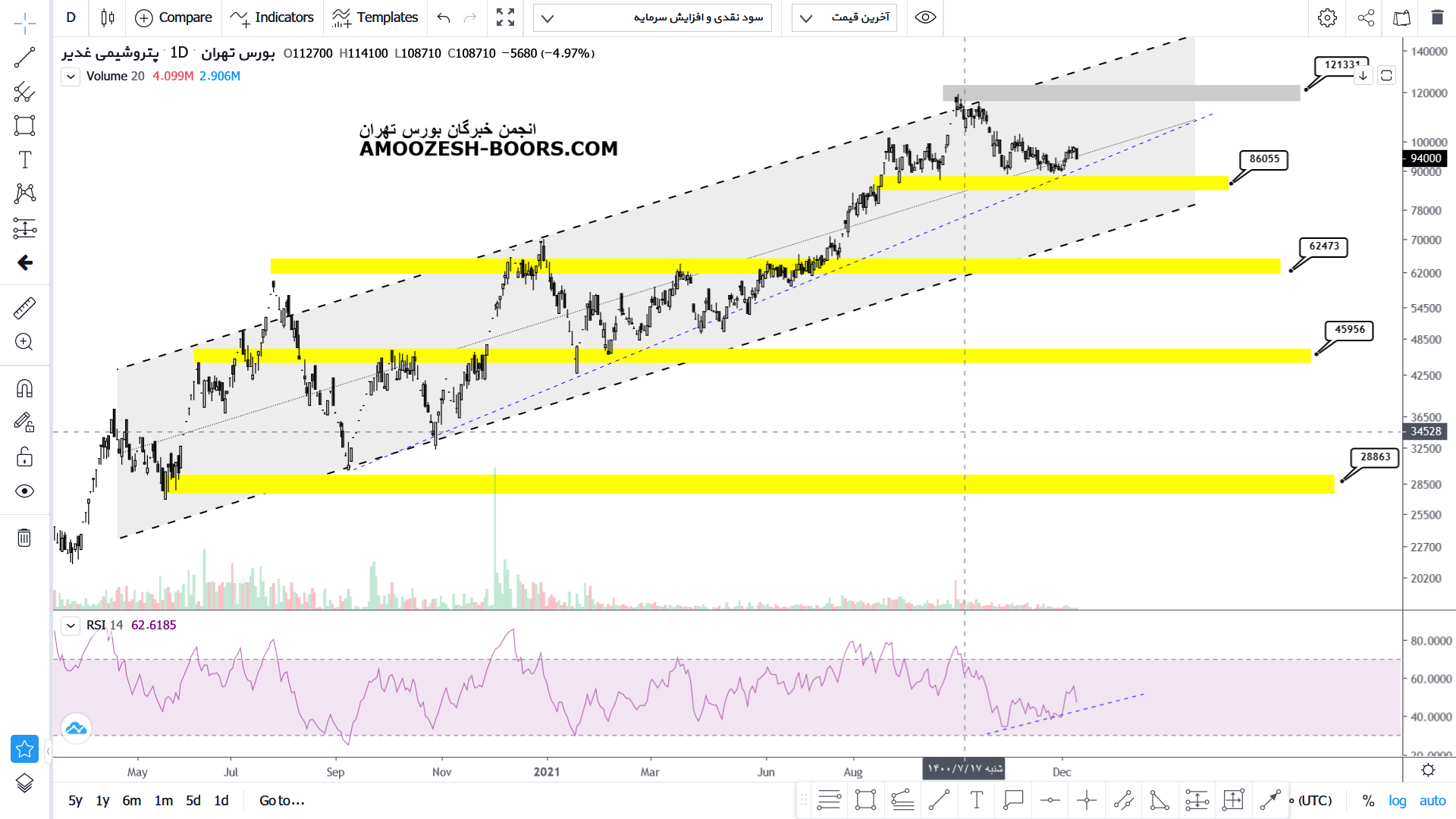 در صورت حمایت در ان ناحیه انتظار رشد تا محدوده مقاومت 10 هزار تومان و 12 هزار تومان و در صورت عدم حمایت انتظار اصلاح بیشتر تا محدوده حمایتی کف کانال 7500 تومان ازسهم میرود