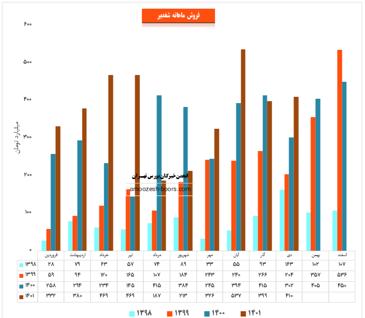 نماد شغدیر در دی ماه حدود بیش از 11500 تن از محصولات خود را به فروش رساند که این میزان در مقایسه با حجم فروش ماه گذشته تغییری پیدا نکرده است.