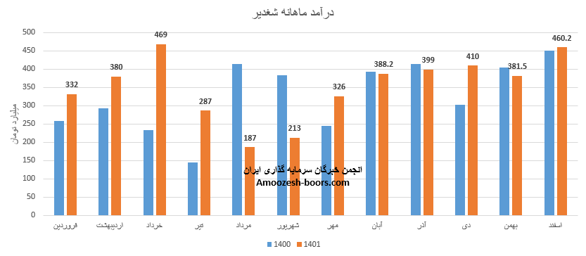تغییرات درآمد ماهانه سهم شغدیر به شرح زیر میباشد :