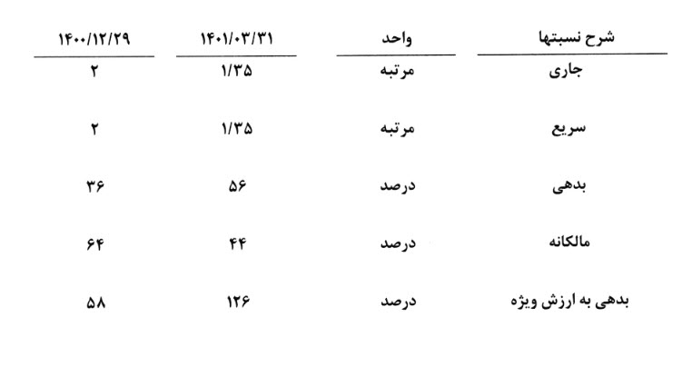 نسبت های مالی شفا به شرح زیر میباشد :