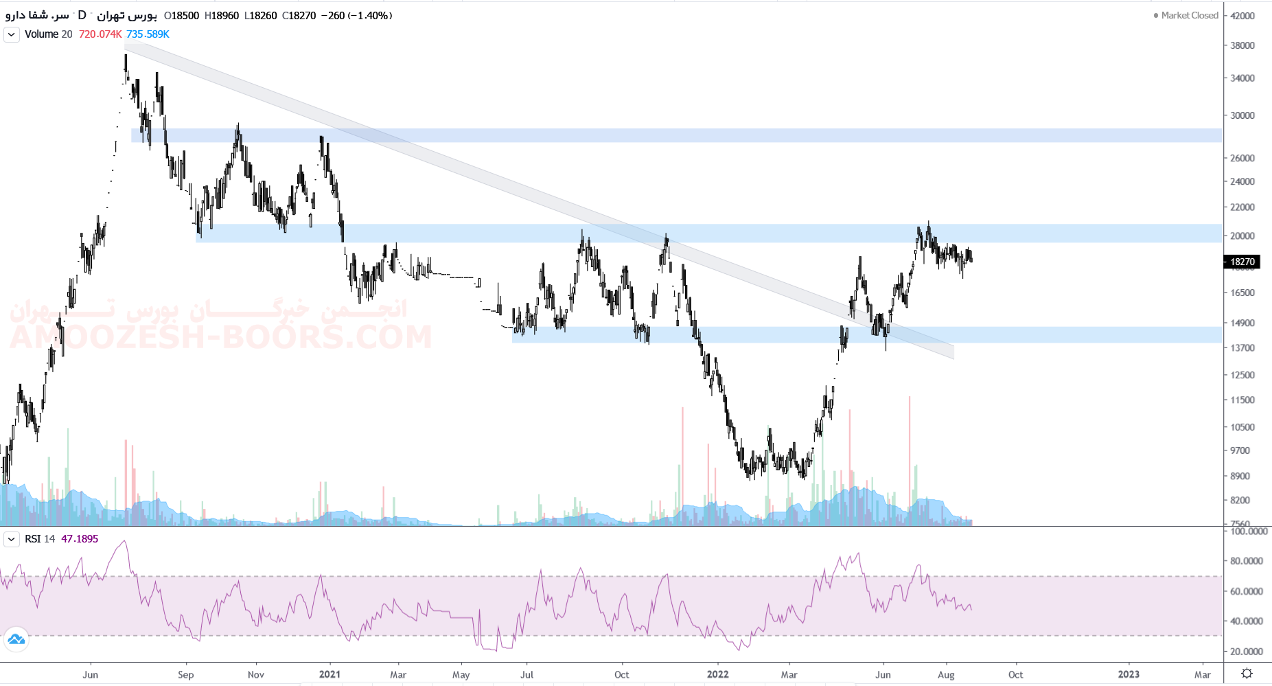 قیمت سهم شفا پس از شکست مقاومت مهم محدوده۱۵۰۰ تومان و پس از برخورد به محدوده مقاومتی 2000 تومان واکنش منفی را از خود بروز داده است. است و اکنون نیز محدوده حمایتی ۱۵۰۰ تومان را پیش روی خود دارد که در صورت حمایت می تواند سیگنال وزود صادر و تا محدوده مقاومتی ۲۰۰۰ تومان مجدد رشد کند اما در صورت شکست این محدوده حمایتی انتظار اصلاح بیشتر تا محدوده حمایتی هزار تومان از سهم شفا میرود.