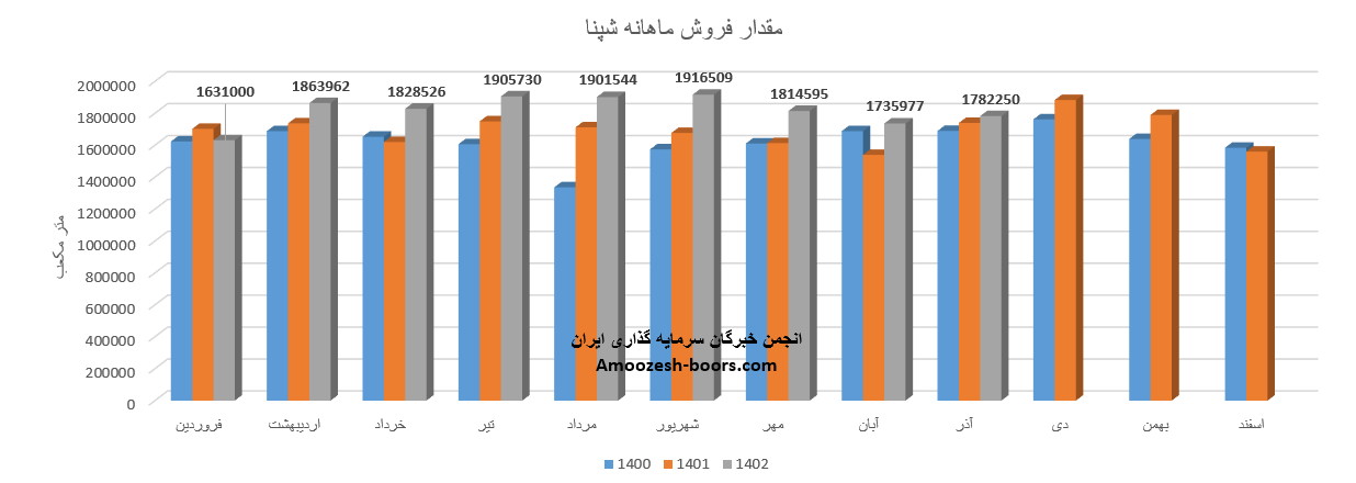 فروش آذر ماه سال 1402 سهم شپنا 1782250 مترمکعب گزارش شده است، تغییرات فروش شپنا به شرح زیر میباشد: