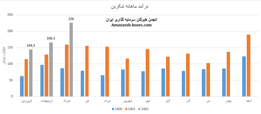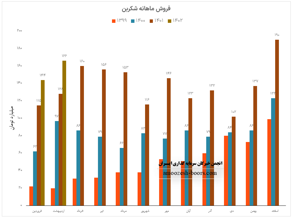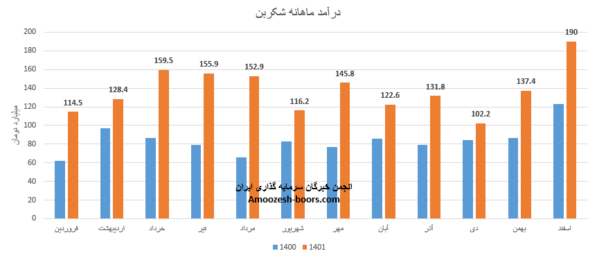 فروش ماهانه نماد شکربن به 226 میلیارد تومان رسیده که 3% از درآمد ماهانه سهم شکربن از طریق صادرات و مابقی از طریق فروش داخلی تامین گردیده است، شکربن علاوه بر تداوم روند صعودی در گزارشات ماهانه موفق به ثبت رکورد جدیدی گردیده است که رشد 36 درصدی نسبت به ماه گذشته، رشد 46 درصدی نسبت به متوسط ماهانه و رشد 42 درصدی درآمد نسبت به مدت مشابه سال گذشته داشته است، محصول اصلی شکربن دوده صنعتی گزارش شده که نسبت به ماه گذشته رشد 3 درصدی نرخ فروش و رشد 39 درصدی مقدار فروش را تجربه نموده، تحلیل بنیادی نماد شکربن نشان میدهد که مجموع عملکرد 3 ماهه نسبت به مدت مشابه بهبود 33 درصدی داشته و طی این مدت 32% از کل درآمد سال گذشته تحقق یافته است.