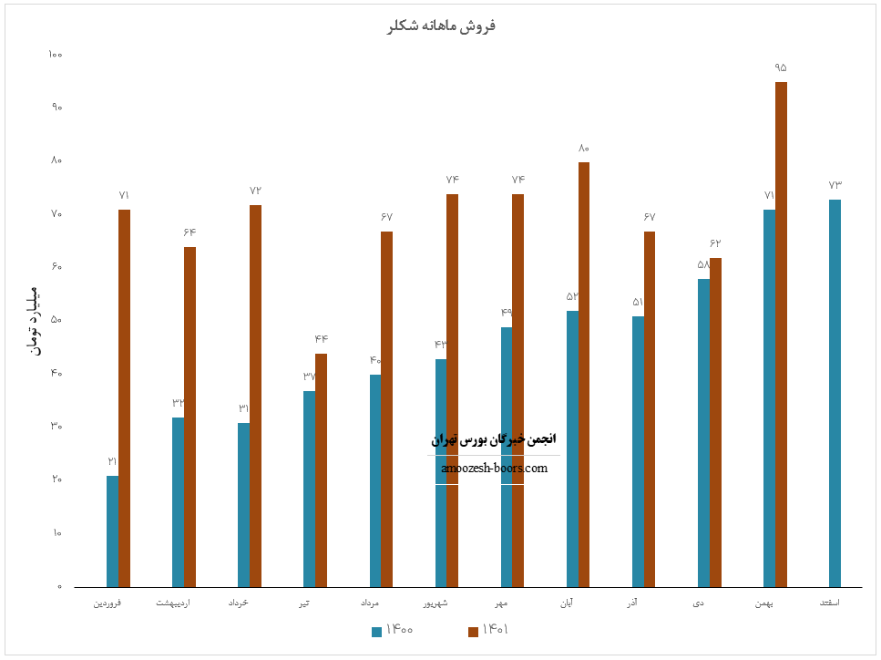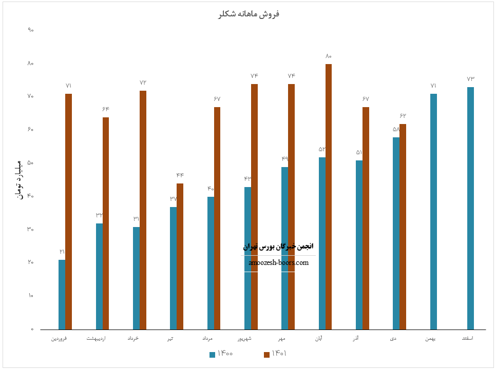 سهم شکلر در بهمن ماه حدود بیش از 10200 تن از محصولات خود را به فروش رسانده که این میزان در مقایسه با حجم فروش ماه گذشته خود حدود 22% رشد پیدا کرده است.