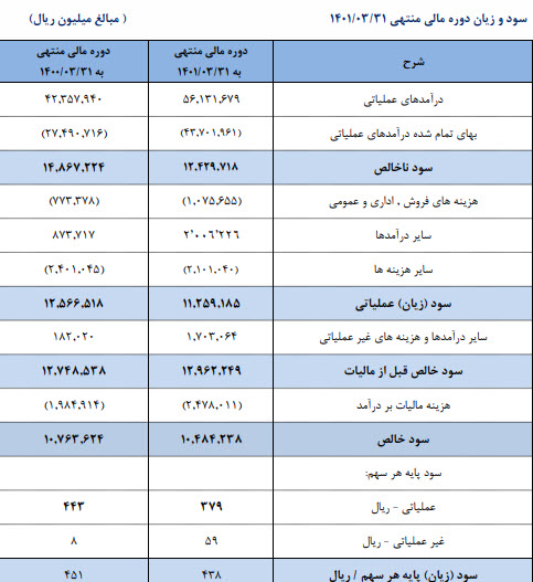 سود ناخالـص: 4122 میلیارد تومان که نسبت به دوره مشابه گذشته 43% افزایش یافته است.