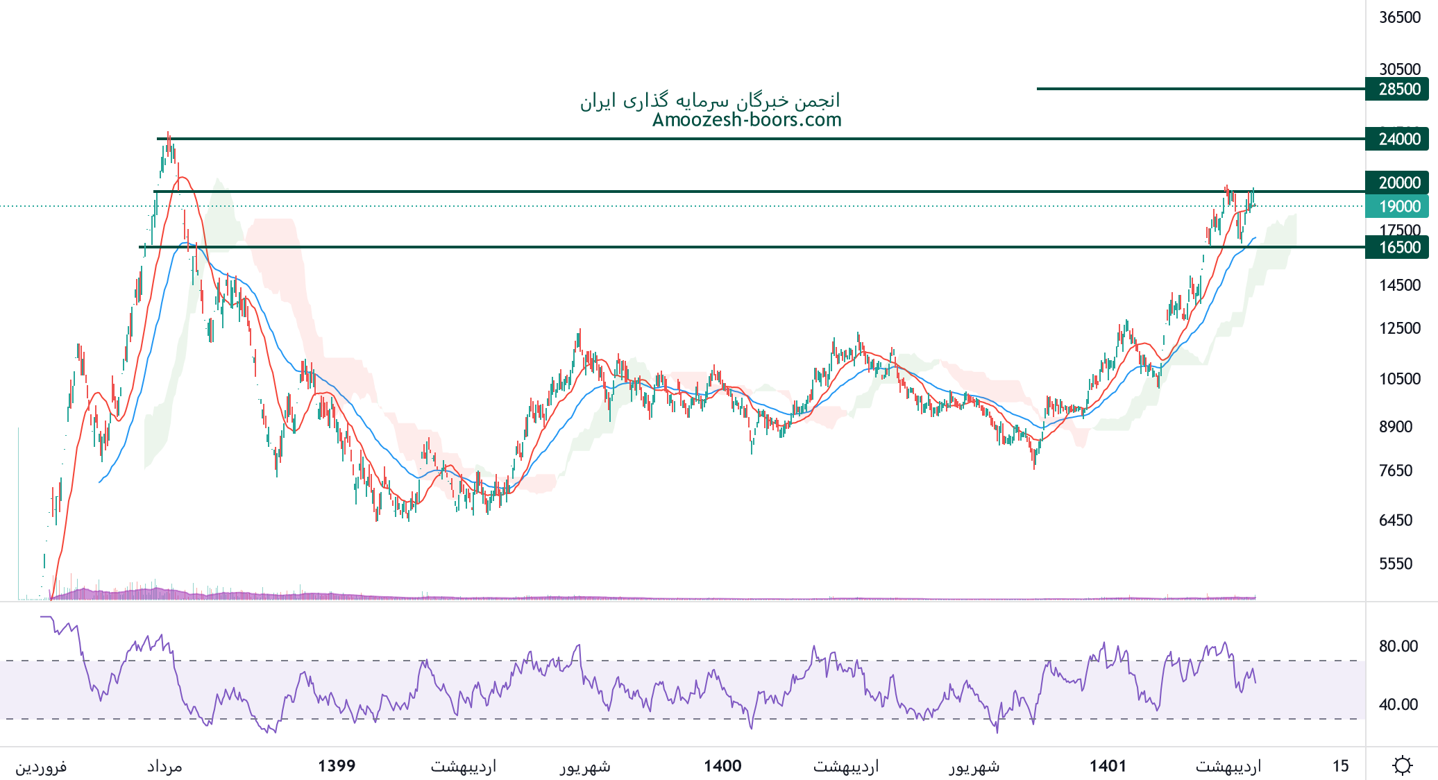 در بررسی تحلیل تکنیکال نمودار شگویا قیمت درگیر مقاومت عدد رند 20000 ریالی میباشد، در صورت اصلاح قیمتی حمایت 16500 ریال ارزیابی شده و در صورت عبور از این ناحیه نیز تارگت نماد شگویا قله تتاریخی 24000 ریال در نظر گرفته میشود.