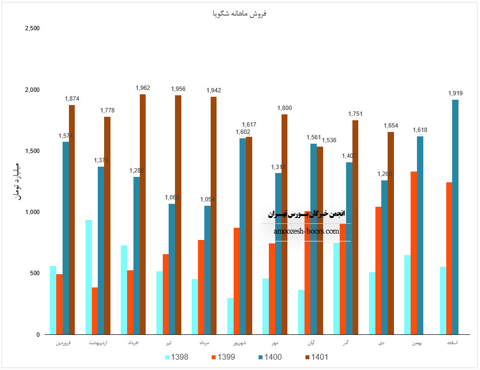 فروش نماد شگویا: 16208 میلیارد تومان که نسبت به دوره مشابه گذشته 32% افزایش یافته است.