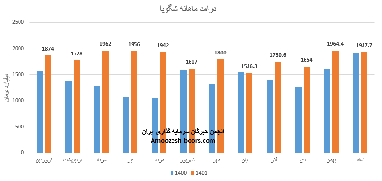 مجموع درآمد سهم شگویا طی عملکرد 11 ماهه نسبت به مدت مشابه سال قبل 31% رشد داشته است.