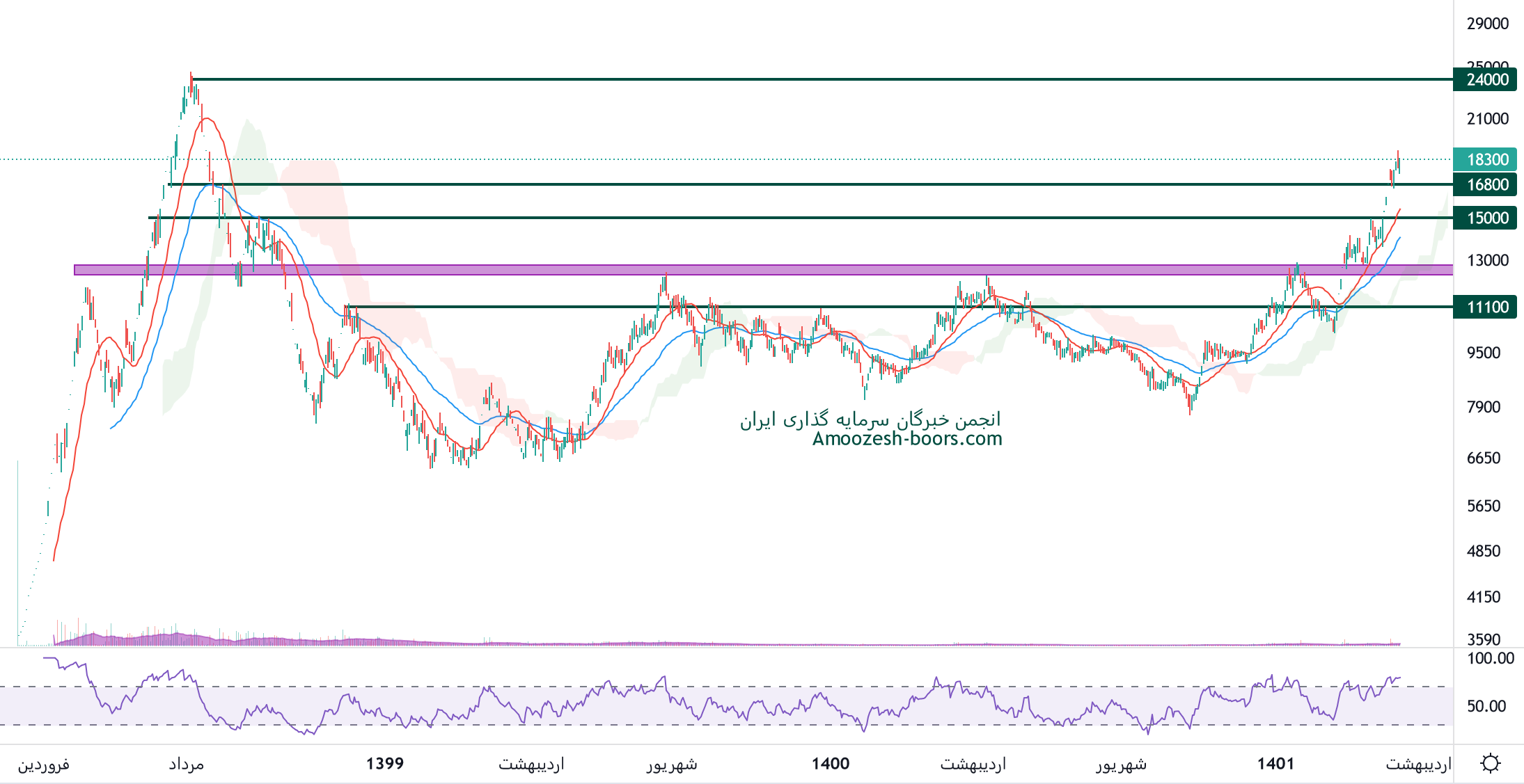 نماد شگویا با عبور از مقاومت 16800 ریال در حال تثبیت میباشد، و تارگت 24000 ریال را دنبال خواهد کرد، باید در نظر داشت مقاومت عدد رند 20000 ریال بر سر راه شگویا قرار دارد و بررسی واکنش قیمت در این ناحیه با اهمیت میبادش همچنین در صورت نفوذ مجدد قیمت به سطح 16800 ریال، حمایت سهم 15000 ریال در نظر گرفته خواهد شد.