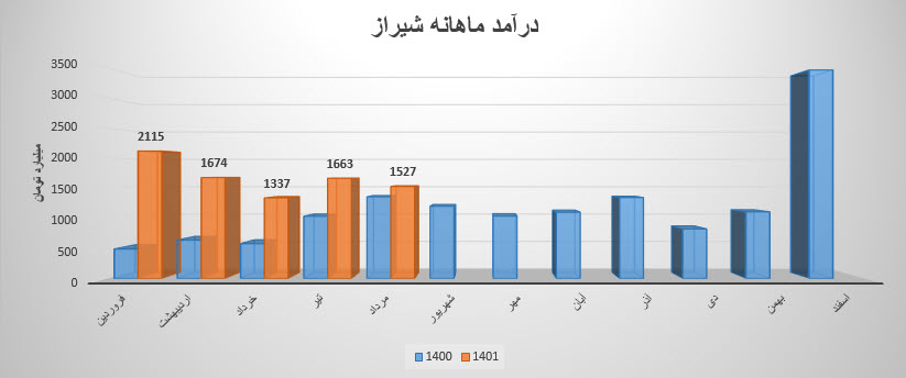 شیراز طی عملکرد 8 ماهه مبلغ 158,112,647 میلیون ریال درآمد فروش داشته است که نسبت به مدت مشابه سال قبل 112% رشد داشته و طی این مدت موفق شده 15 درصد بیشتر از بودجه سال گذشته عمل نماید .