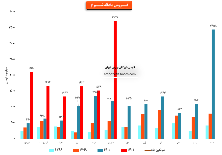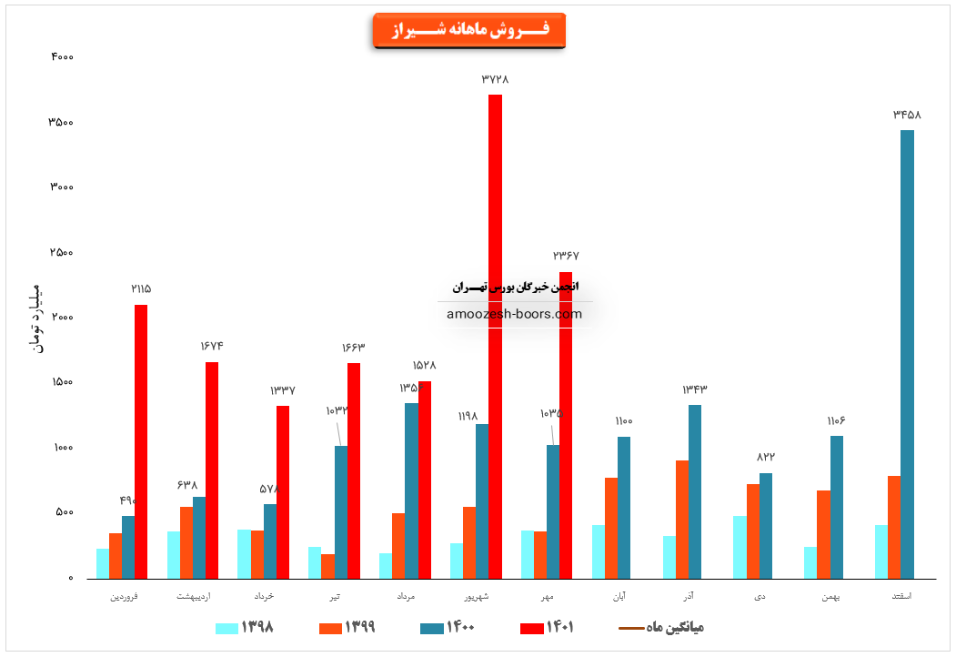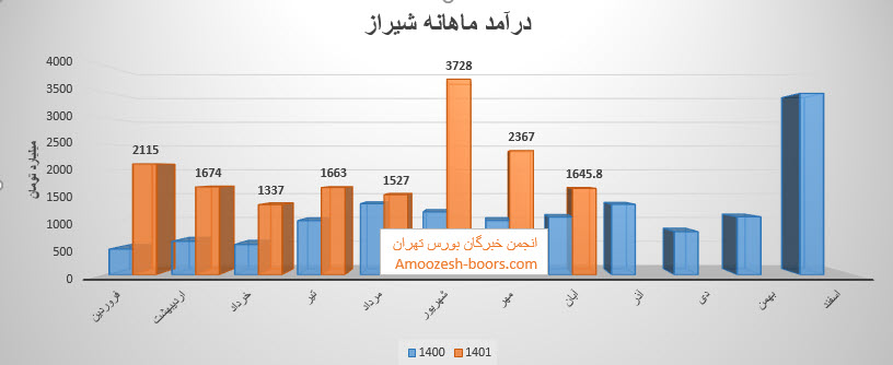 فروش نماد شیراز: 11671 میلیارد تومان که نسبت به دوره مشابه گذشته 121% افزایش یافته است.
