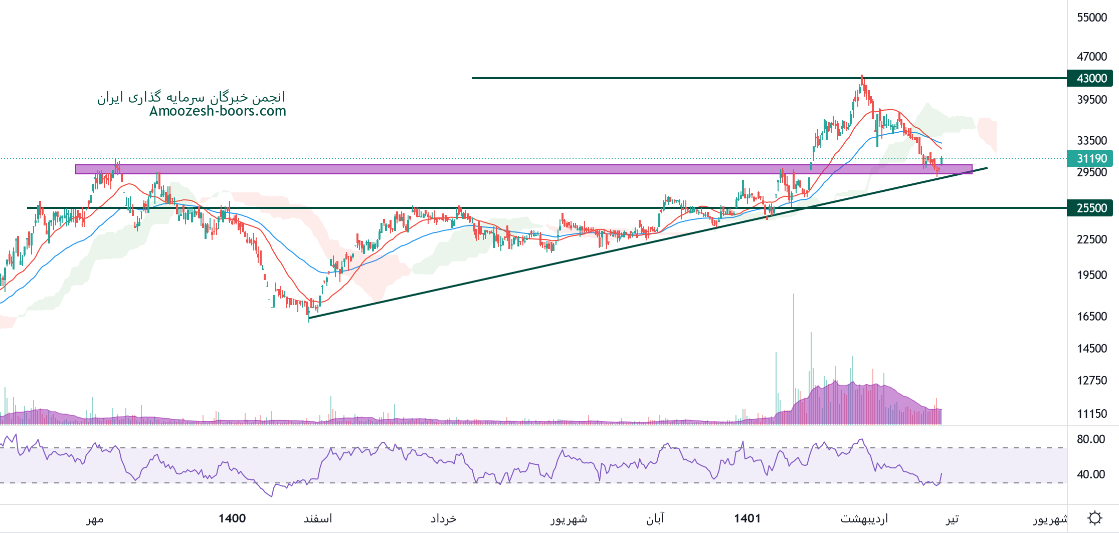 چارت نماد شیراز به محدوده کم ریسک تلاقی حمایت های محدوده استاتیک و حمایت داینامیک صعودی در محدوده قیمتی 30000 ریال رسیده، در صورت ورود حد ضرر رعایت شود، حمایت بعدی سهم شیراز سطح 25500 ریال خواهد بود، همچنین در صورت تثبیت قیمت 43000 ریال تارگت شیراز ارزیابی میگردد.