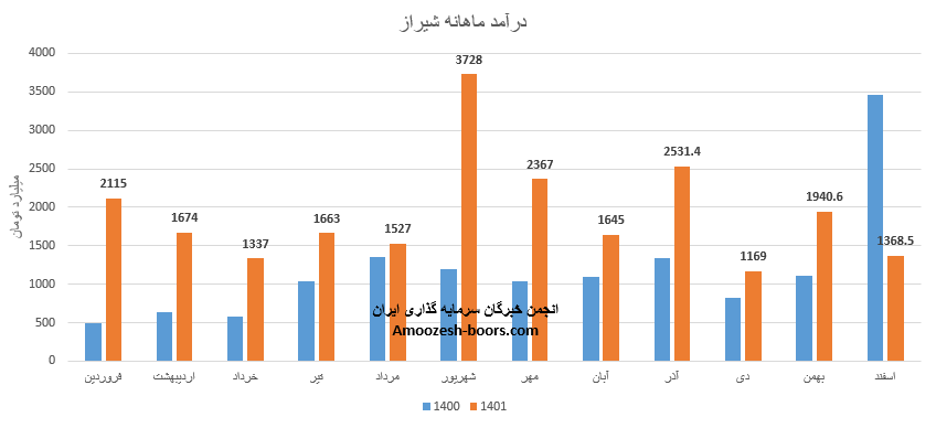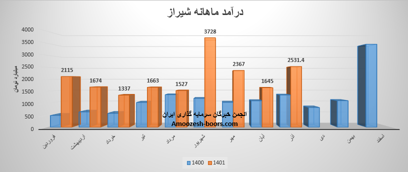 همچنین نماد شیراز در این ماه افزایش 66 درصدی درآمد نسبت به ماه گذشته و افزایش 75 درصدی نسبت ب مدت مشابه را داشته است . اما در مقایسه با متوسط ماهانه همچنان 2 درصد افت دارد .