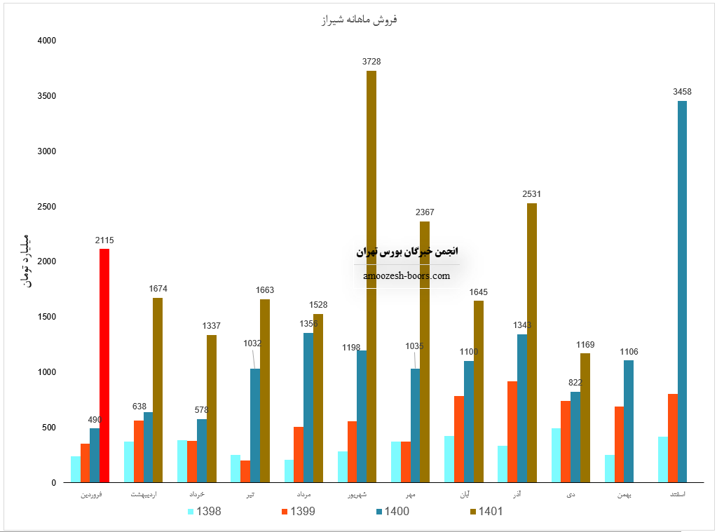 فروش ماهانه شیراز تغییرات زیر را تجربه نموده است .