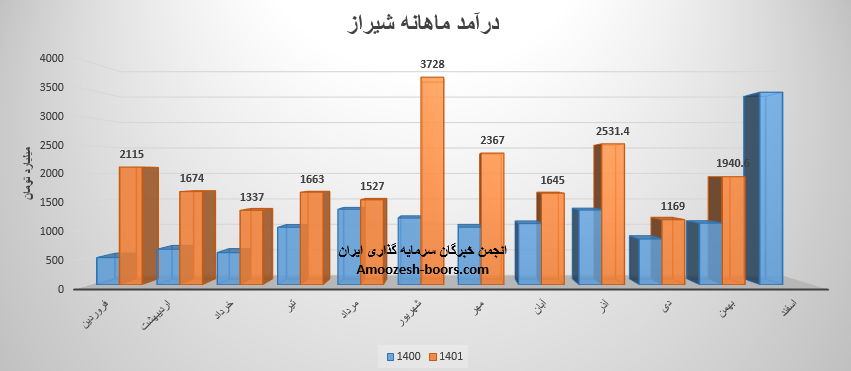 فروش نماد شیراز: 18343 میلیارد تومان که نسبت به دوره مشابه گذشته 108% افزایش یافته است.