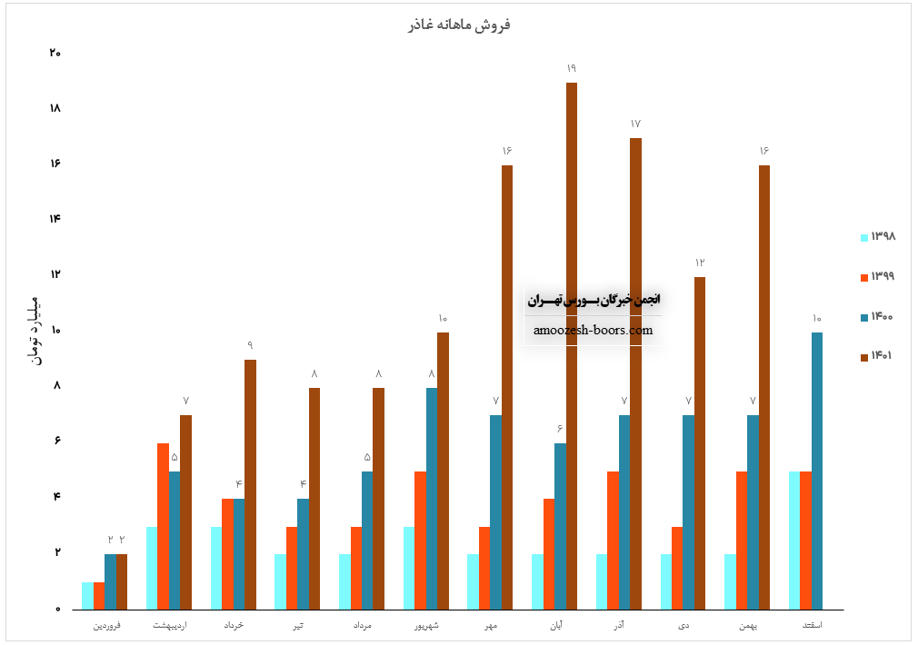 نماد غاذر در بهمن ماه حدود بیش از 1344 بسته هزار عدد از محصولات خود را به فروش رساند که این میزان در مقایسه با حجم فروش ماه گذشته حدود 55% رشد پیدا کرده است.
