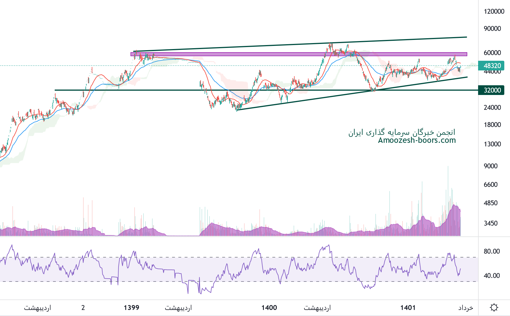 قیمت نماد غاذر در حال رفت و برگشت مابین سطح 40000 و 60000 ریال میباشد، باید منتظر رفتار قیمت ماند، در صورت از دست رفتن محدوده 40000 ریال، حمایت بعدی 32000 ریال در نظر گرفته خواهد شد، همچنین در صورت عبور قیمت از محدوده 60000 ریال، 80000 ریال مقاومت بعدی سهم غاذر خواهد بود.