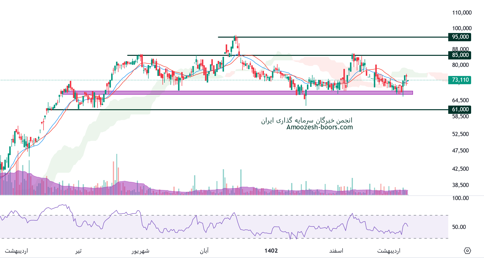 با توجه به عبور قیمت از محدوده مقاومتی ذکر شده، پیشنهاد میشود تا محدوده مقاومتی بعدی سهامدار غالبر باشید و در محدوده مقاومتی ذکر شده رفتار قیمت را زیر نظر داشته باشید.