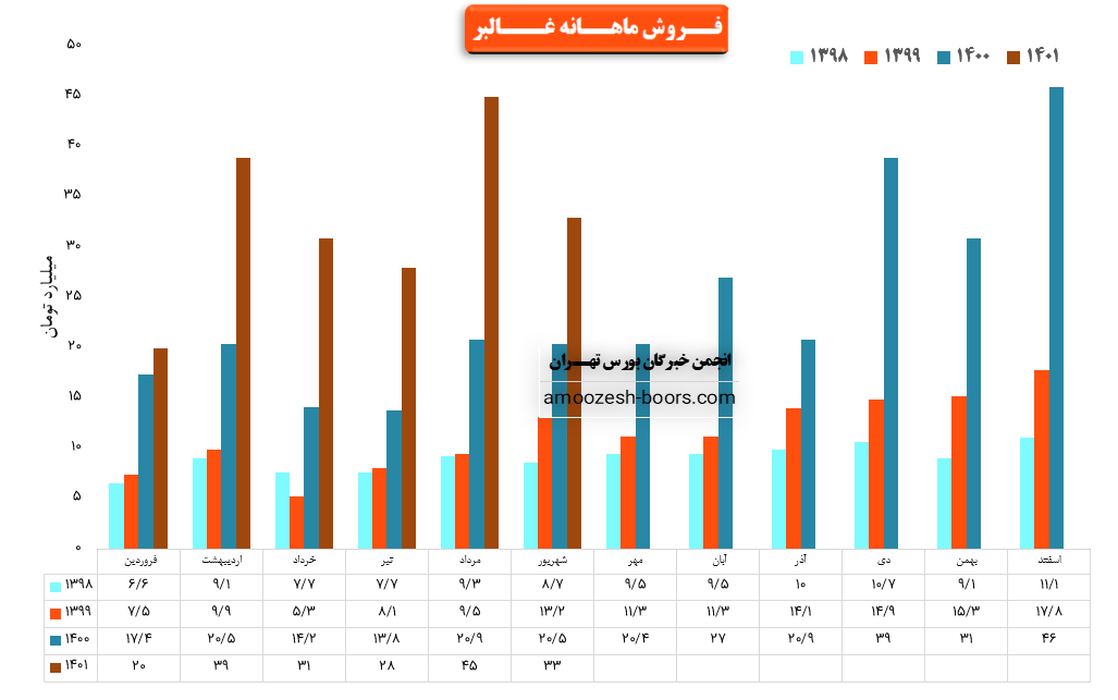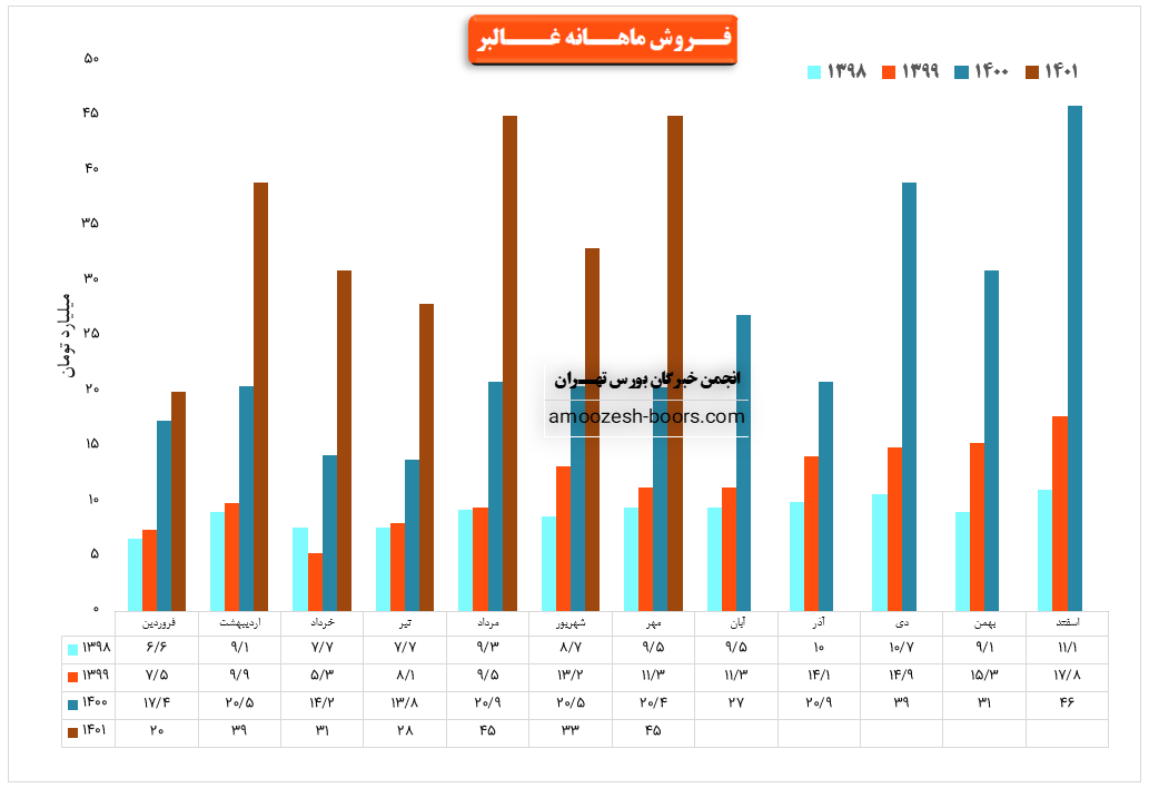 فروش نماد غالبر: 197 میلیارد تومان که نسبت به دوره مشابه گذشته 83% افزایش یافته است.
