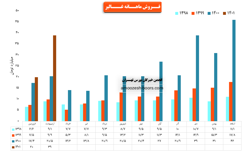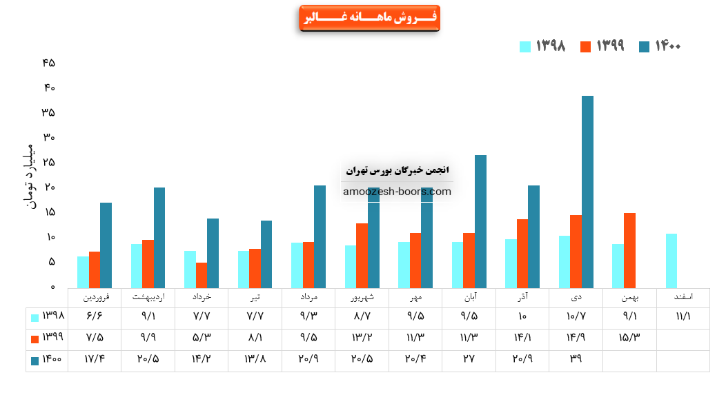 همچنین نماد غالبر در این ماه توانسته حدود بیش از 457 هزار کیلوگرم از محصولات خود را در بازار داخل به فروش برساند که این میزان در مقایسه با حجم فروش ماه گذشته حدود 20% کاهش پیدا کرده است.