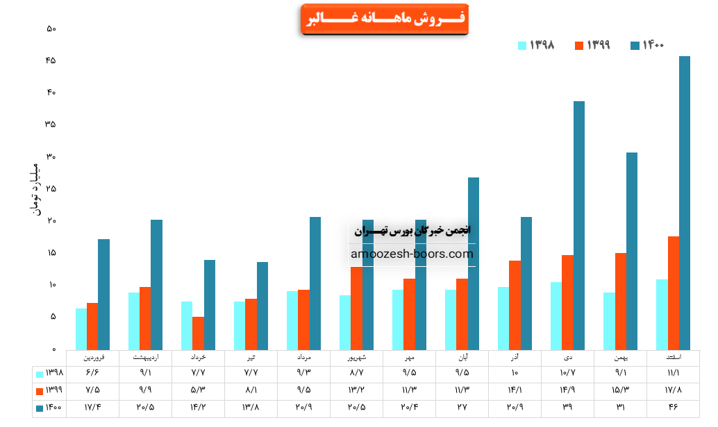 همچنین نماد غالبر در این ماه توانسته حدود بیش از 626 هزار کیلوگرم از محصولات خود را به فروش برساند که این میزان در مقایسه با حجم فروش ماه گذشته حدود 37% افزایش پیدا کرده است.