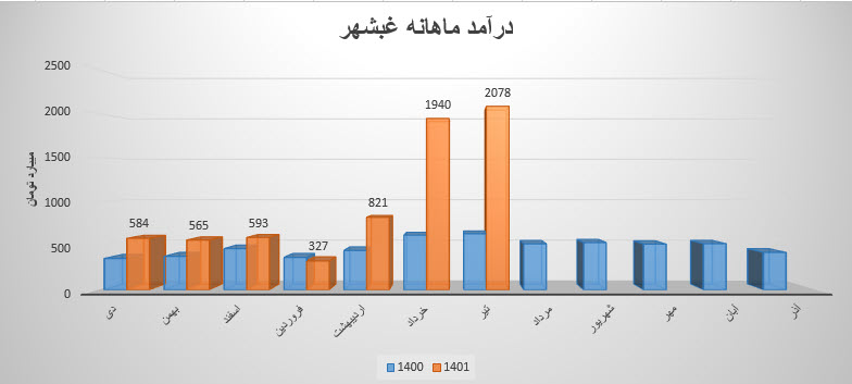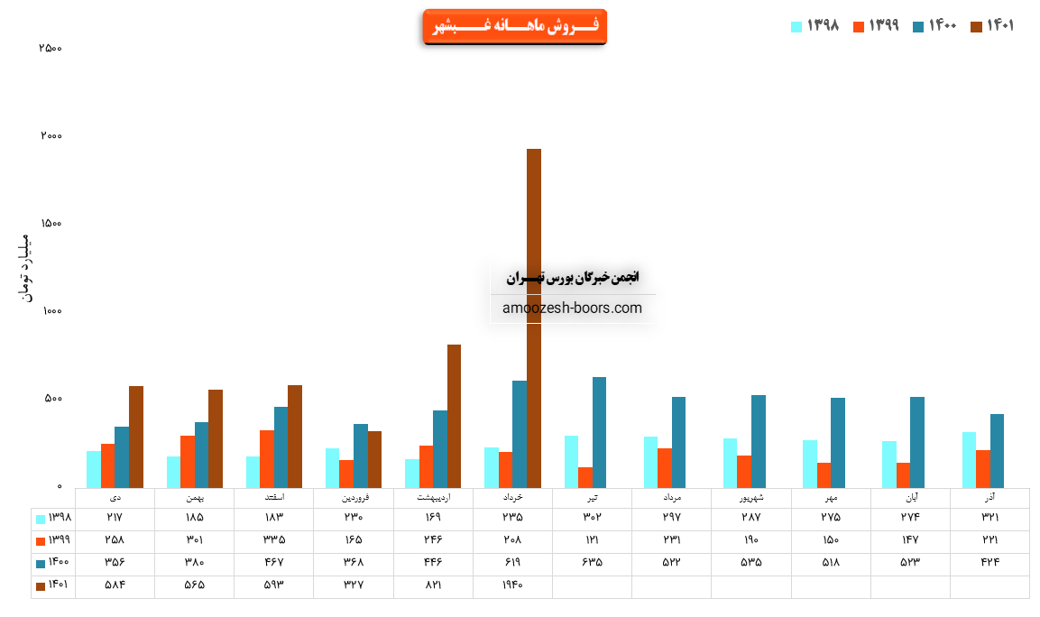 فروش نماد غبشهر: 4815 میلیارد تومان که نسبت به دوره مشابه گذشته 82% افزایش یافته است.