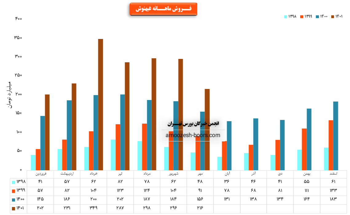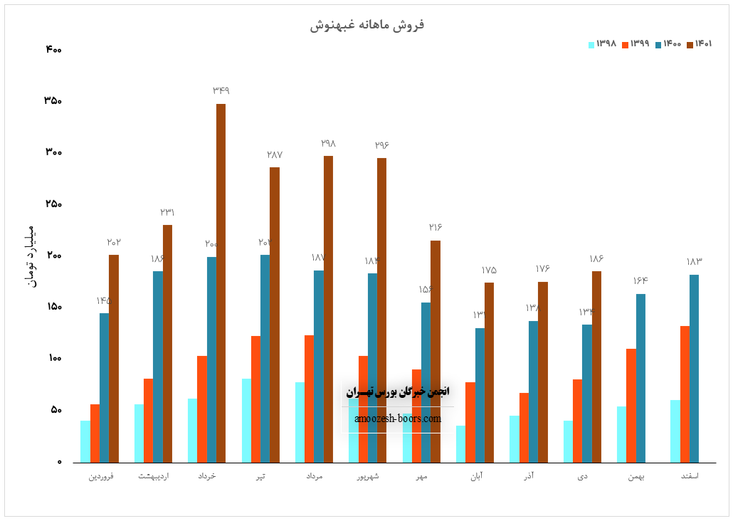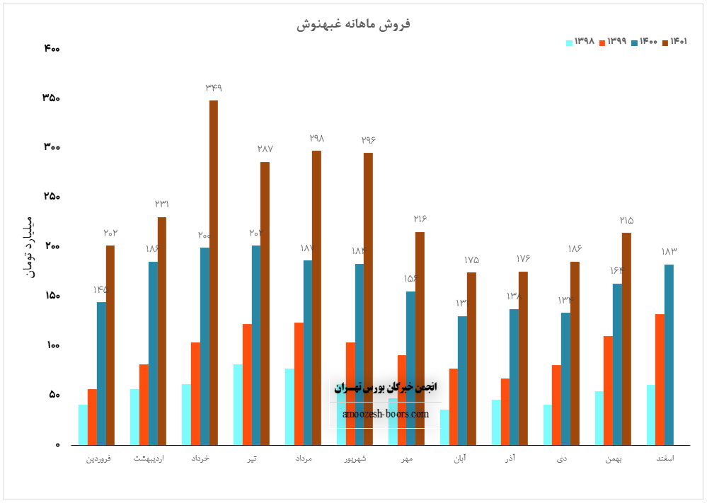 فروش نماد غبهنوش: 2135 میلیارد تومان که نسبت به دوره مشابه گذشته 39% افزایش یافته است.