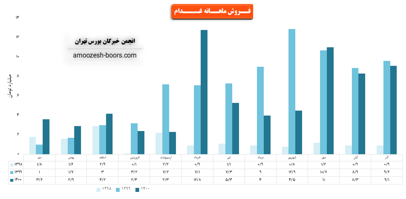 نماد غدام در مهر 110 ، شهریور 45 و مرداد 49 و تیر با فروش 53 میلیارد ریالی به عدد 535 میلیارد ریال رسیددرآمد شرکت در این دوره نسبت به ماه قبل 140% افزایش و نسبت به میانگین ماه های قبل98.85% افزایش داشته است.