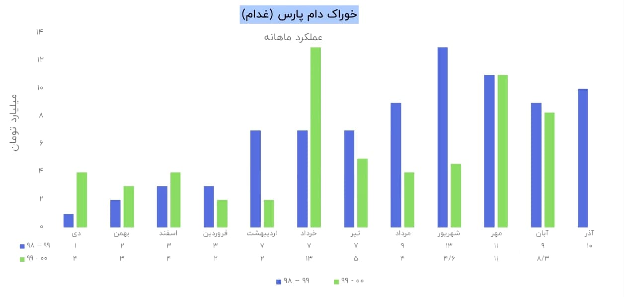 همچنین در بررسی حجم فروش دان مرغ که پر فروش ترین محصول غدام بعد از خوراک دام محسوب میشود نیز روند ثابتی را در 7 ماه گذشته شاهدیم بطوریکه غدام در آذر هم نتوانست بیشتر از 330 تن از دان مرغ خود را بفروش برساند