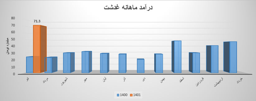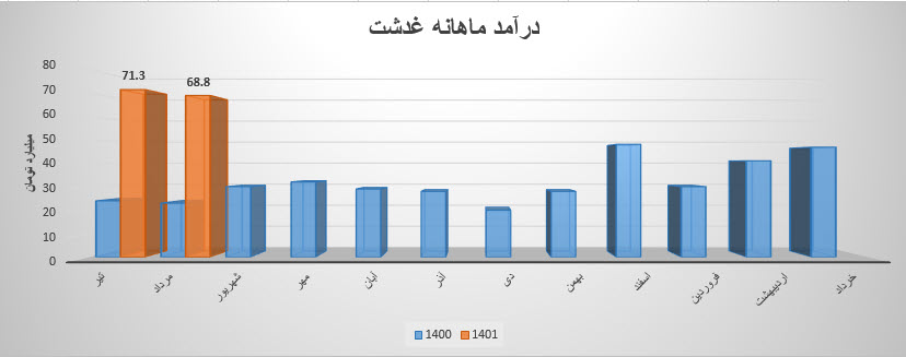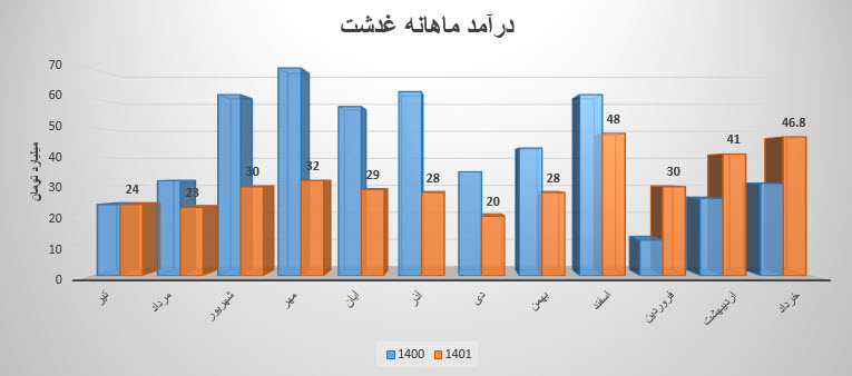 نماد غدشت نسبت به دوره 1 ماهه مشابه سال قبل 202% افزایش درآمد داشته است.