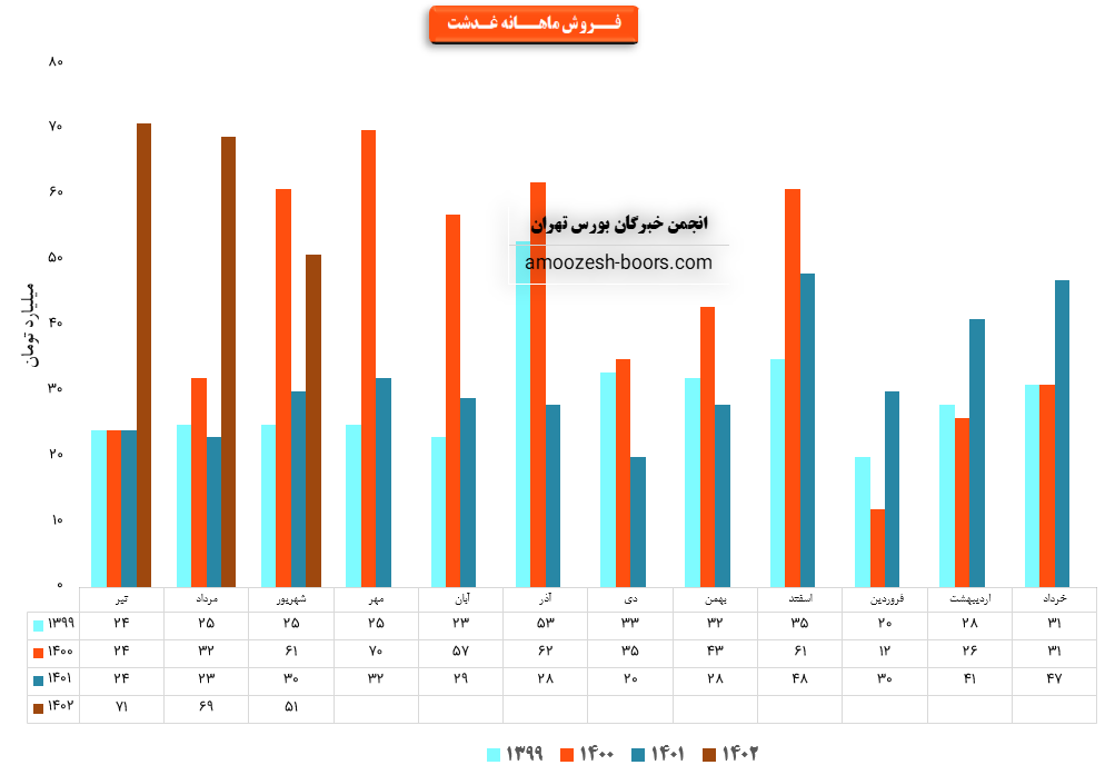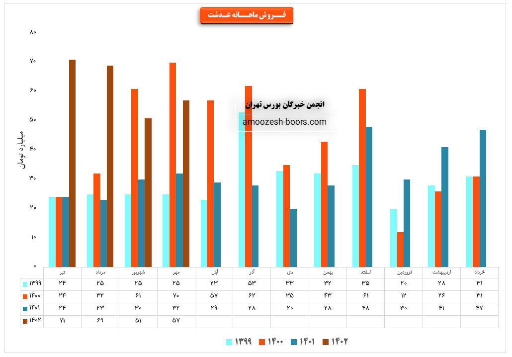 فروش نماد غدشت: 379 میلیارد تومان که نسبت به دوره مشابه گذشته 26% کاهــــش یافته است.