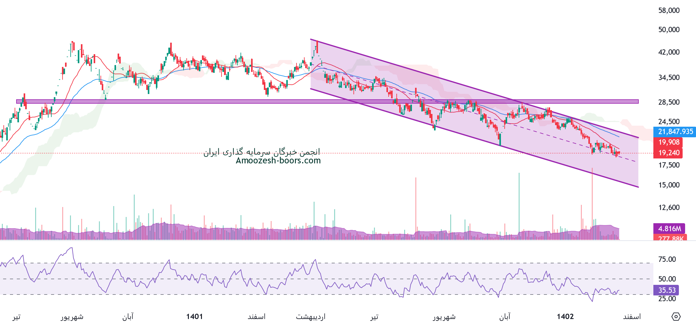 در صورت متعادل شدن جو بازار قیمت پتانسیل برگشت داشته که در این صورت مقاومت های غدشت به ترتیب 22000 و 28000 ریال در نظر گرفته خواهند شد.