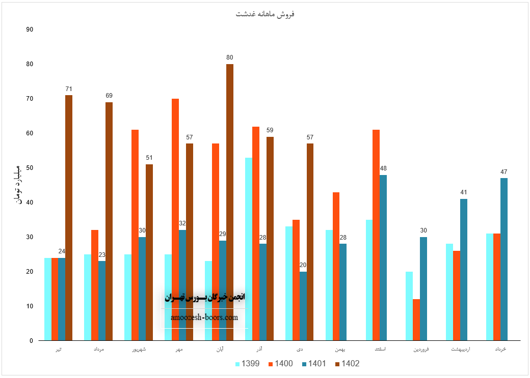 فروش نماد غدشت: 387 میلیارد تومان که نسبت به دوره مشابه گذشته 134% افزایــــش یافته است.