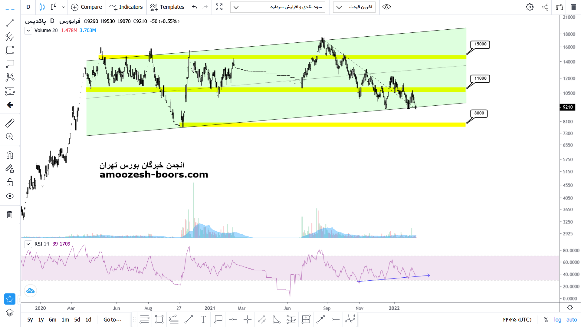 درصورت حمایت و رشد میتواند تا محدوده 1100 تومان و در صورت شکست تا محدوده میدلان کانال صعود خود را ادامه دهد اما در صورت ار دست رفتن حمایت مهم کف کانال ریزش بیشتر تا محدوده 800 تومان ادامه خواهد داشت.