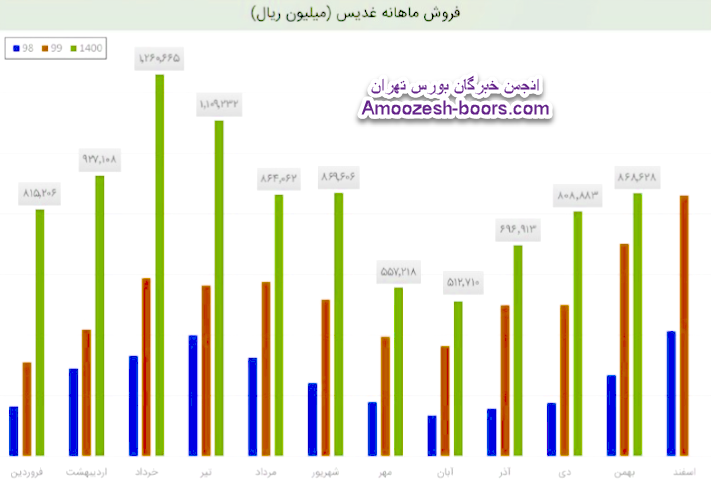نماد غدیس در آذر 1400 مبلغ 70 میلیارد تومان درامد داشته که این میزان نسبت به ماه گذشته 37% و همچنین نسبت به مدت مشابه سال گذشته 40% رشد پیدا کرده است!
