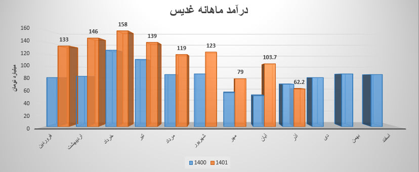 غدیس با گزارش درآمد 111.4 میلیارد تومانی ، روند بهبود در گزارشات ماهانه خود را از سر گرفته است . درآمد بهمن ماه سهم غدیس در مقایسه با ماه گذشته 41 درصد افزایش ،و نسبت به مدت مشابه 28 درصد رشد داشته است اما همچنان از متوسط ماهانه سال جاری 2 درصد کمتر میباشد .