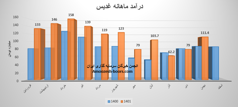 فروش نماد غدیس: 1064 میلیارد تومان که نسبت به دوره مشابه گذشته 41% افزایش یافته است.
