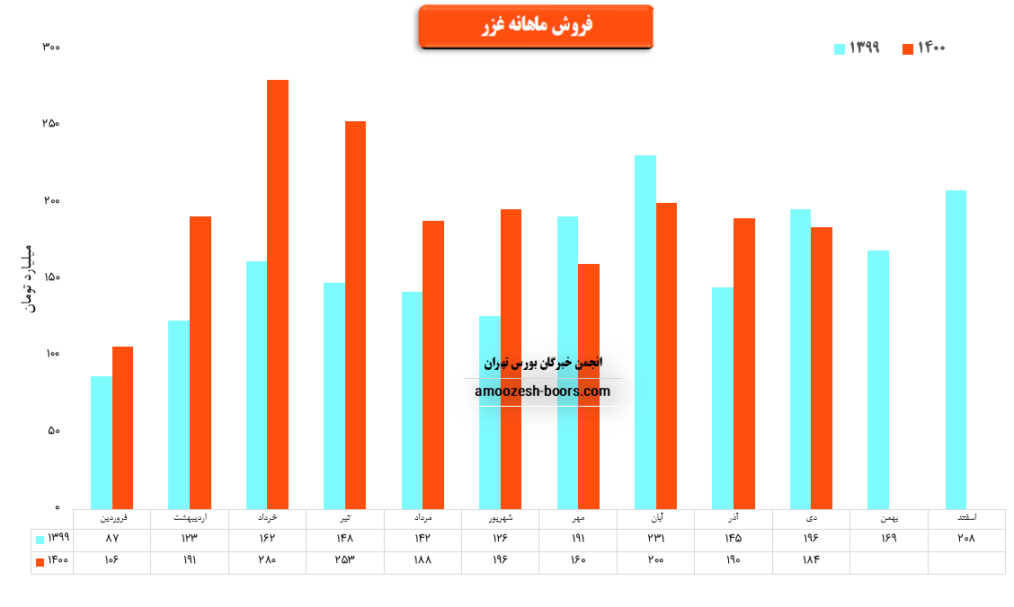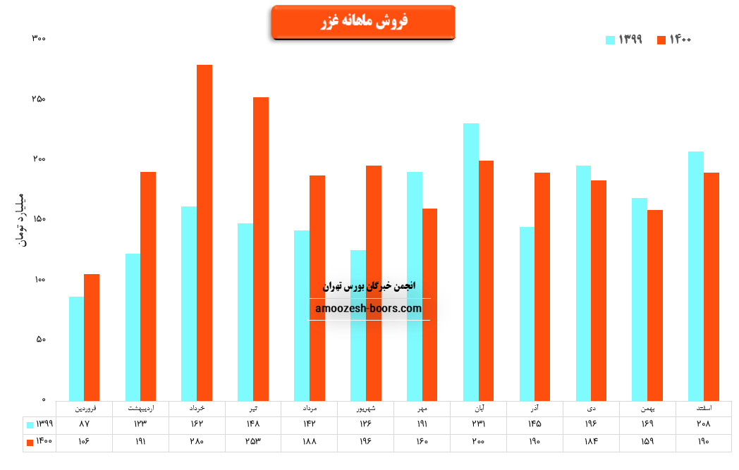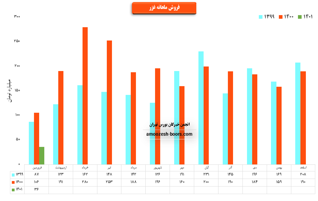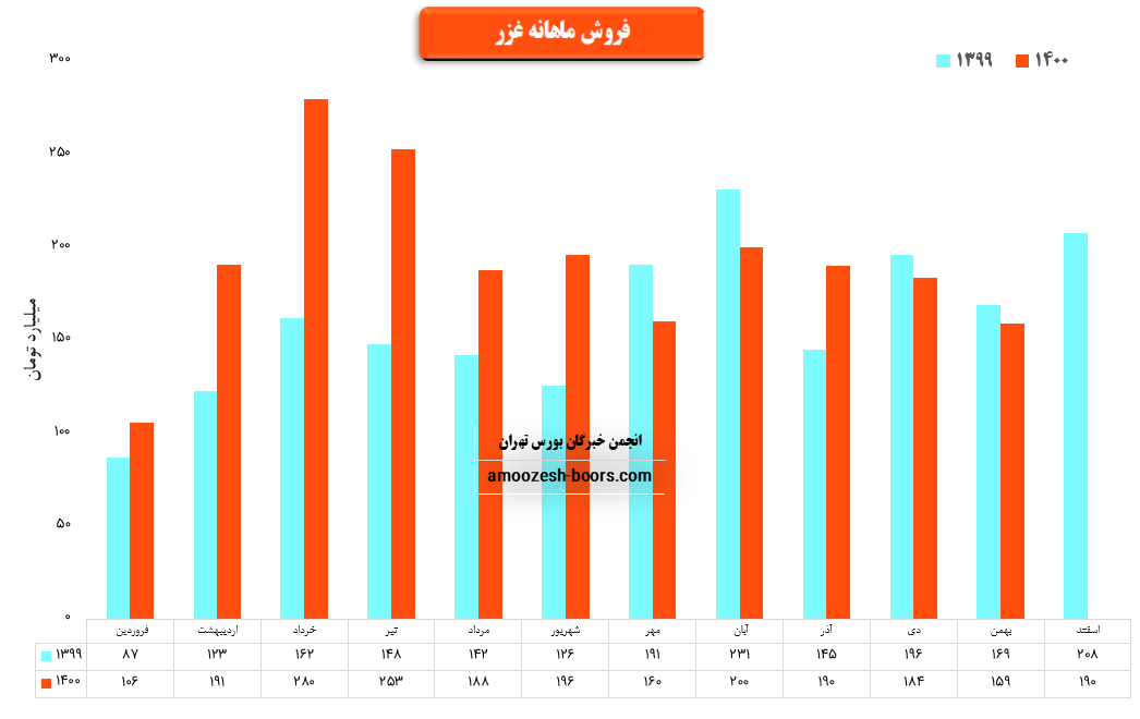 فروش نماد غزر: ۱۷۶۳ میلیارد تومان که نسبت به دوره مشابه گذشته ۳۳% افزایش یافته است.