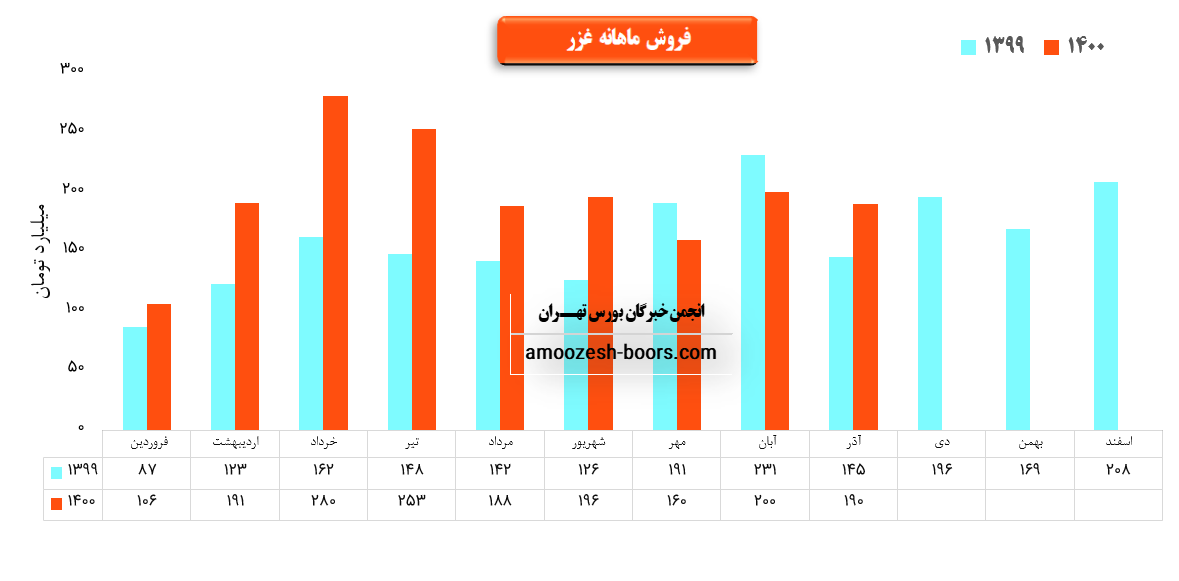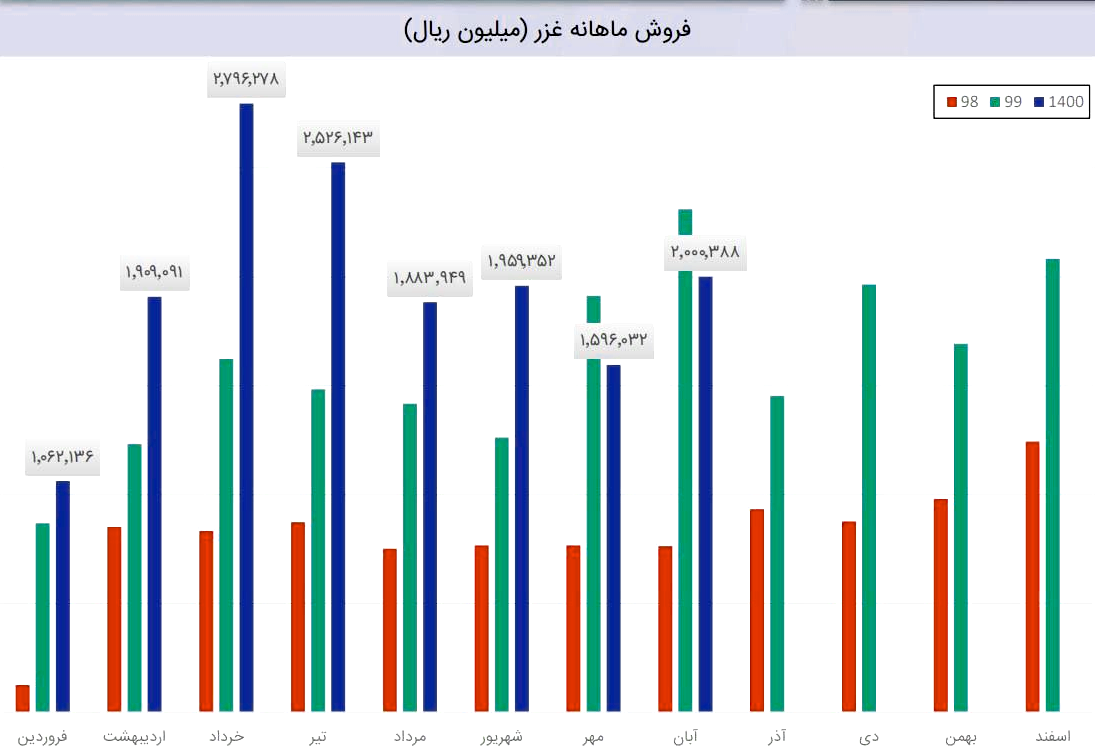 نماد غزر در این ماه ۲۱ هزار و ۹۰۸ تن انواع محصولات تولیدی خود را به فروش رسانده که نسبت به ماه گذشته ۳۰ درصد رشد داشته است.