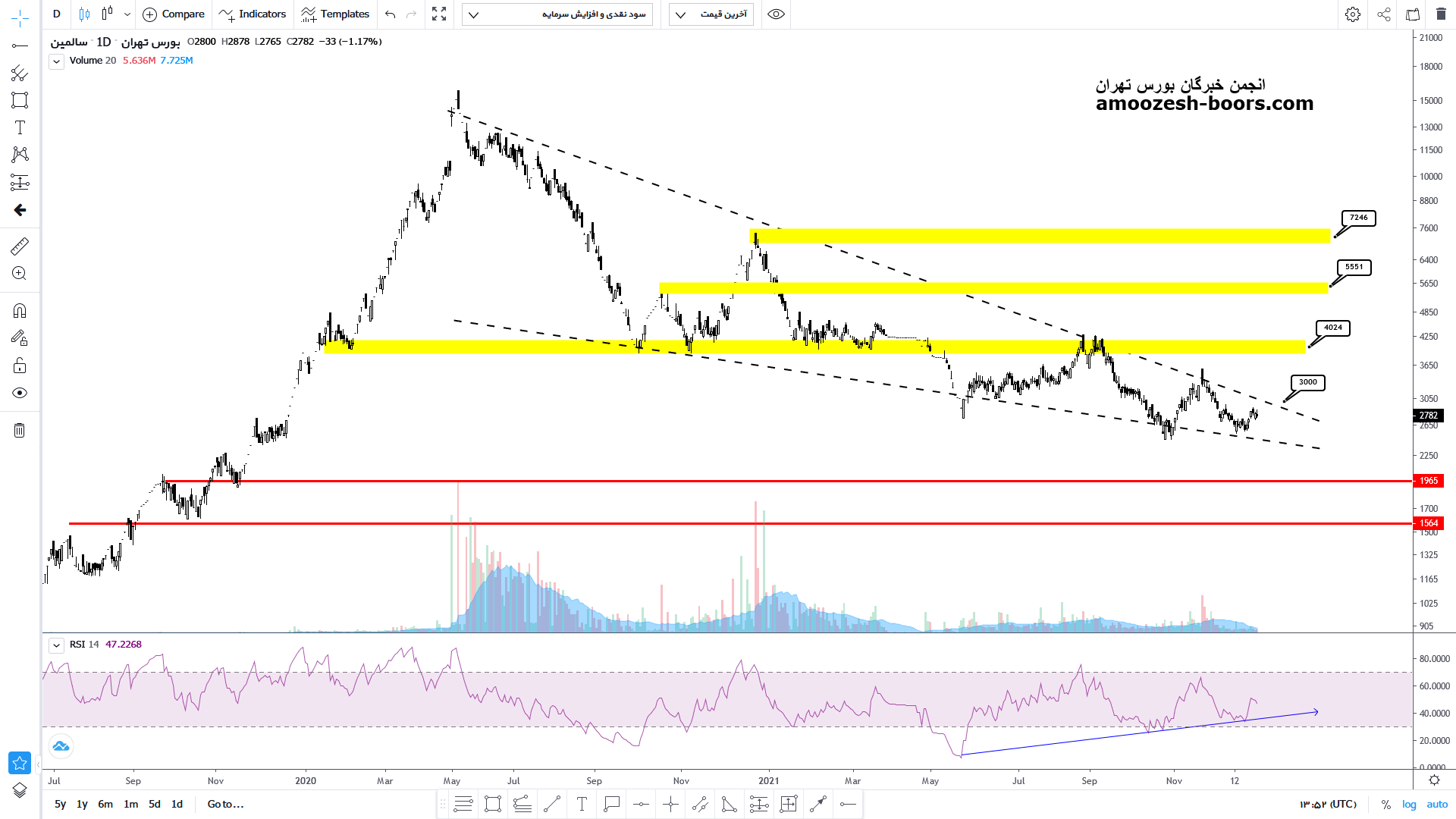 دسترسی کامل و به روز به این بخش از تحلیل های 300 سهم معروف بازار، مختص اعضای VIP میباشد اما چکیده این مطالب را می توانید به صورت رایگان در کانال تلگرام ما داشته باشید.