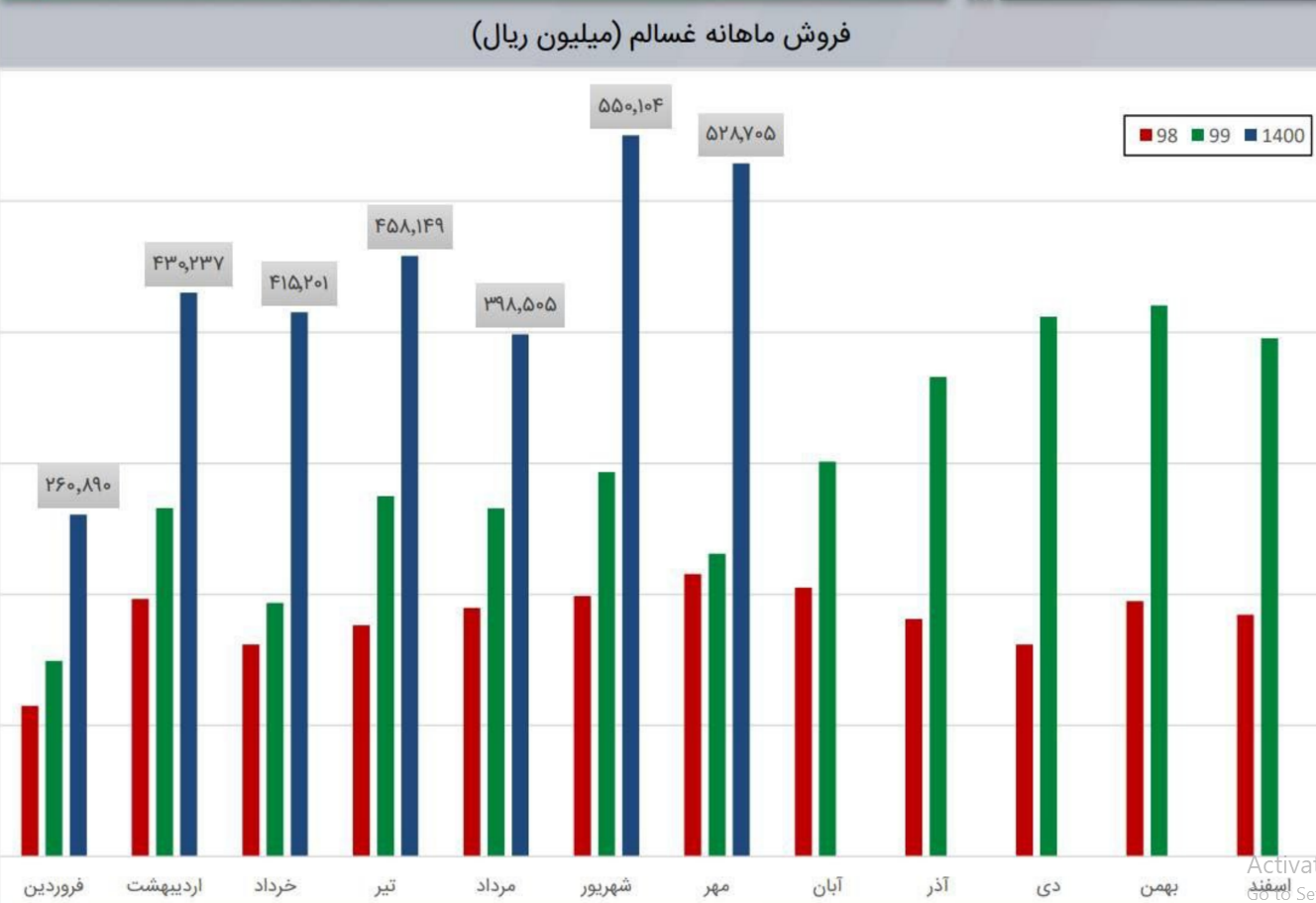 فروش نماد غسالم: 428 میلیارد تومان که نسبت به دوره مشابه گذشته 83% افزایش یافته است.