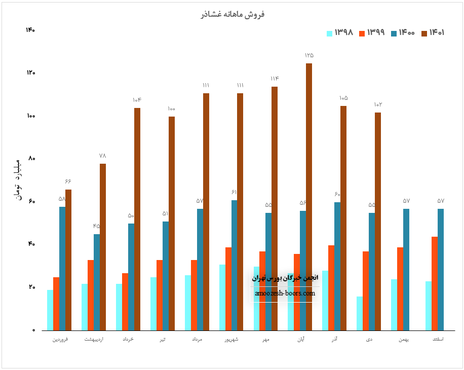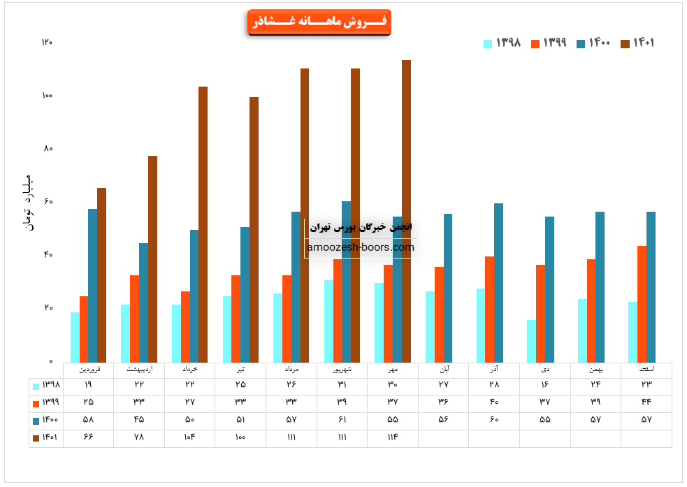فروش سهم غشاذر: 571 میلیارد تومان که نسبت به دوره مشابه گذشته 81% افزایش یافته است.