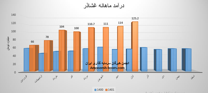 شرکت شیر پاستوریزه پگاه آذربایجان غربی (غشاذر) طی عملکرد آبان 1401 به درآمد 125.2 میلیارد تومانی رسید .این درآمد تمام از طریق فروش داخلی تامین شد . درآمد آبان ماه غشاذر در مقایسه با ماه قبل رشد 10% و نسبت به میانگین ماه های قبل 54% افزایش، نسبت به دوره 1 ماهه مشابه سال قبل 121% افزایش درآمد داشته است. پر فروش ترین محصول غشاذر ، انواع پنیر گزارش شده است که سهم 31% از فروش ماهانه را بخود اختصاص داده و نرخ فروش این محصول رشد 3 درصدی نسبت به ماه قبل را تجربه نموده است. مجموع درامد سهم غشاذر طی عملکرد 8 ماهه نسبت به مدت مشابه سال قبل 90% رشد داشته است.